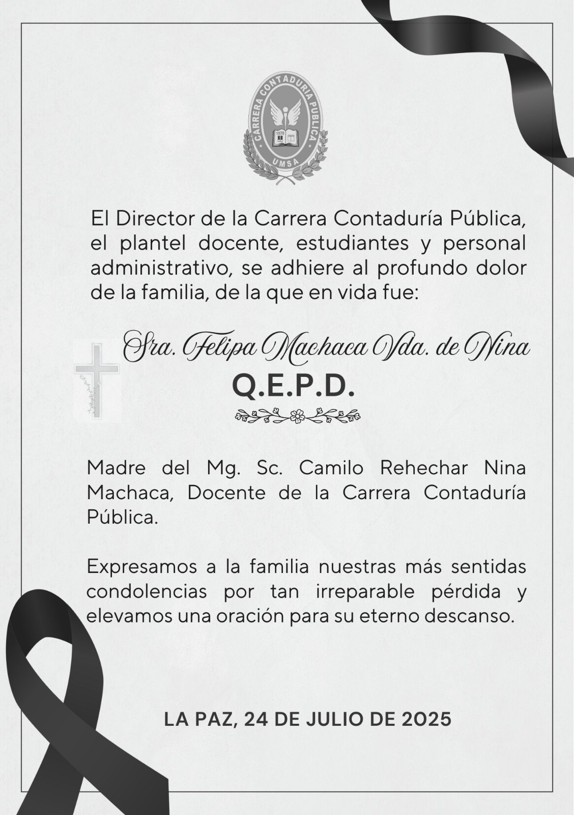 Se comunica a los Docentes y Estudiantes, cuyas asignaturas se imparten en el Pabellón «B», que debido a los arreglos que se efectuarán en este ambiente, se suspenden las clases presenciales, a partir del día de Viernes 2 de mayo hasta el día Viernes 9 de mayo/2025, por lo que se autoriza la realización de clases virtuales durante este periodo.