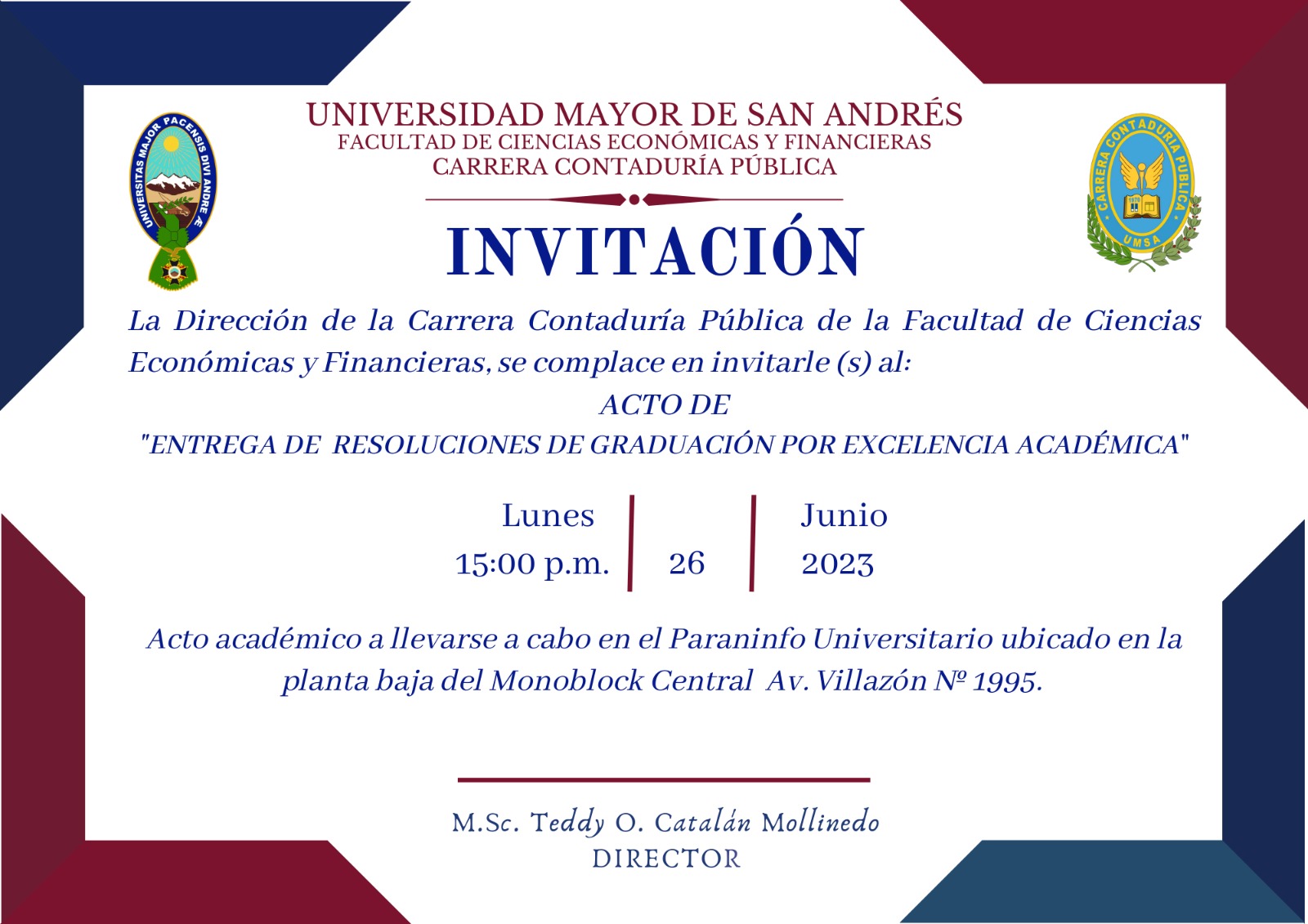 ACTO DE «ENTREGA DE RESOLUCIONES DE GRADUACIÓN POR EXCELENCIA ACADÉMICA»